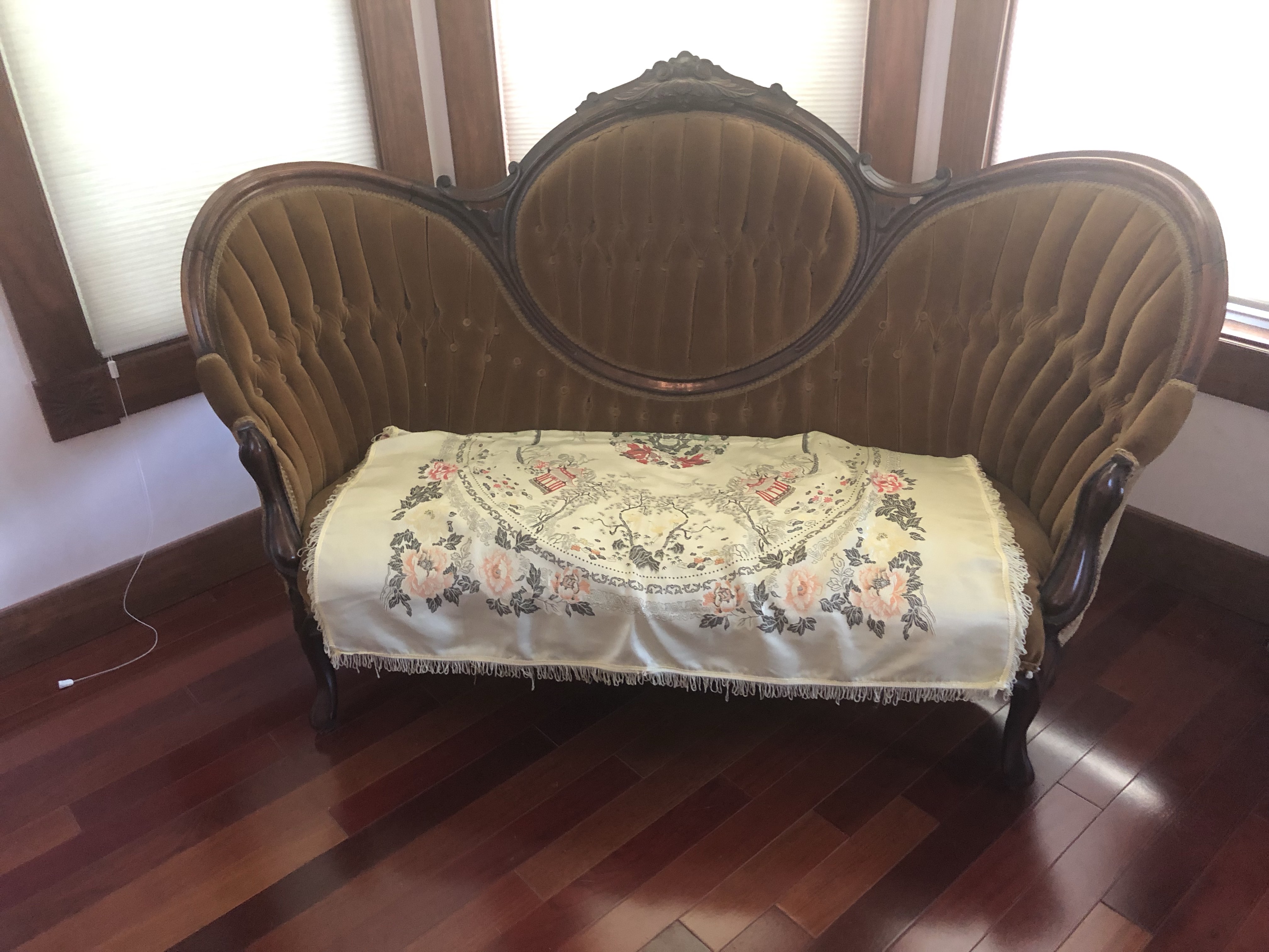 [image: IMG_1241.jpg] This is an 1880’s couch with original upholstery. The cover is a Chinese silk. Seat is good condition, edge by leg is fraying.
